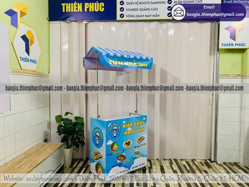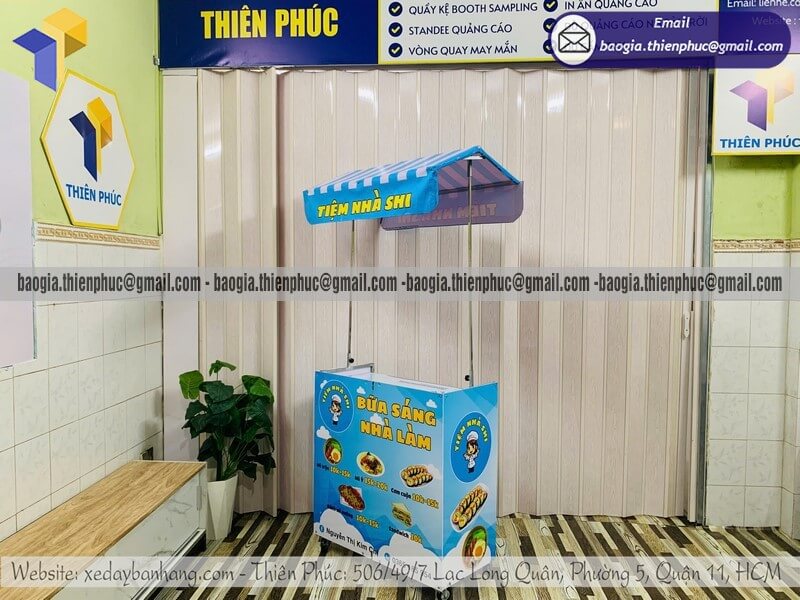 Thiết kế bắt mắt, logo nổi bật và màu sắc đồng bộ giúp tạo điểm nhấn giữa không gian đông đúc. Một chiếc xe đẩy bán hàng giá rẻ nhưng được đầu tư hình ảnh chuyên nghiệp hoàn toàn có thể trở thành “biển quảng cáo di động” hiệu quả.